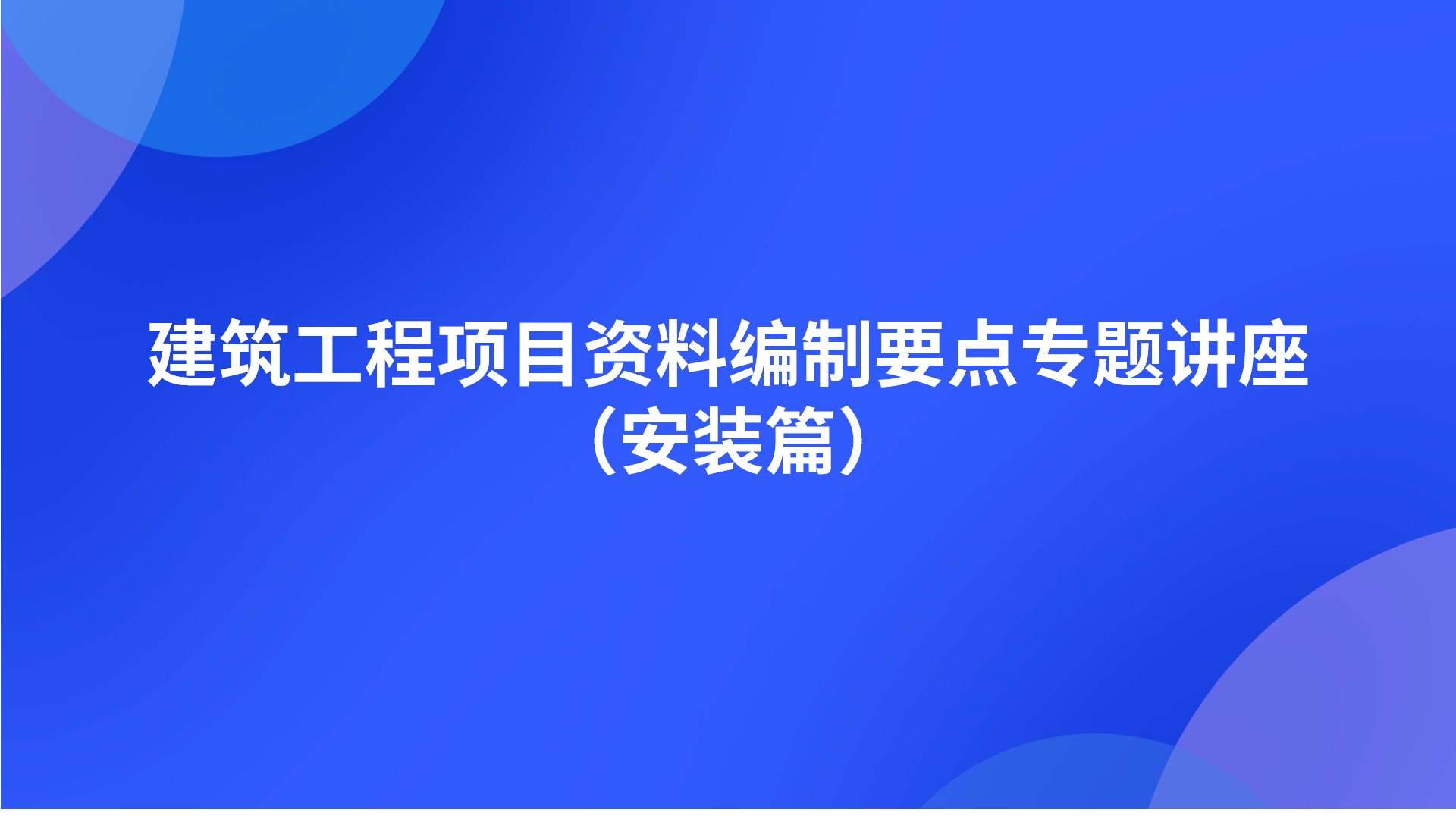 建筑工程項(xiàng)目資料編制要點(diǎn)專題講座(安裝篇)